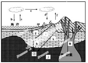 2、单选题 下图是水循环和岩石圈物质循环示意图,其中①②③代表三大类岩石。读图,完成第下列问题。