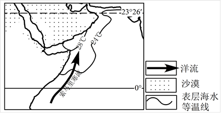 (4)索马里半岛沿海有一条沙漠带,解释这里热带沙漠气候的成因。(3分)
