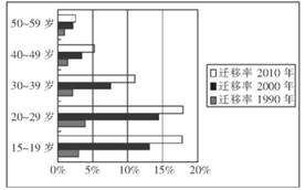 5、单选题 读我国某地农村劳动力不同年龄段的迁移率(迁移率是指一定地区一定时期迁入迁出人口之和占该时期平均人口的百分比)柱状图,完成题。
