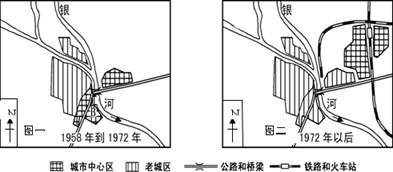 4、单选题 图为“我国某城市中心区迁移示意图”。读图回答问题。