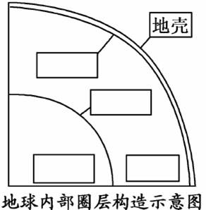(2)根据地震波的传播状况可以划分地球内部圈层构造。在地球内部圈层构造示意图中的方框内,填写地球内部各圈层和分界面的名称。