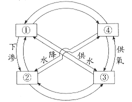5、单选题 下图为地球圈层间的物质交换示意图,序号所代表的圈层正确的是