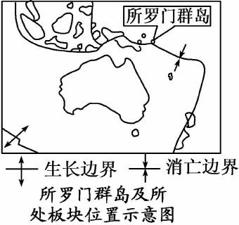 (1)2007年d月2日,南太平洋所罗门群岛附近发生8级强烈地震。该群岛发生的地震与其所处的板块位置有关,该群岛位于?板块与?板块交界处。该地震发生后,澳大利亚当局立即关闭东部海岸的海滩旅游景点,以防?(灾害)侵袭。
