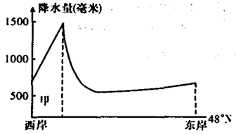 小题2:图3中M阴影区为同一种气候类型,但该气候类型在甲地区分布的最高纬度高于40°,而在乙地区分布的最高纬度低于35°,影响其分布的主要因素是
