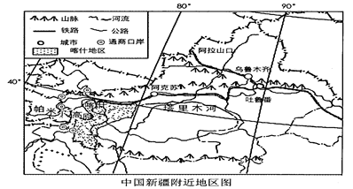 材料一?继深圳、珠海、汕头、厦门和海南之后,2010年5月,中央正式批准喀什设立经济特区。下图为中国新疆附近地区图。