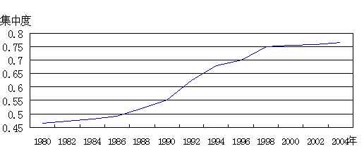5、单选题  下图为1980年至2004年我国服装产业空间集中度示意图,由此图可以看出该类产业将直接导致我国