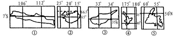 4、单选题 下图是世界上的五个岛屿,关于各图比例尺和表示范围的大小,正确的是