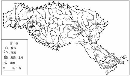 2、综合题 (10分)下图示意我国汉江流域,根据材料,完成下列问题。