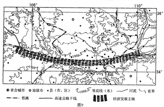 (3)说明图示地区经济发展主轴空间分布的主要原因。(8分)