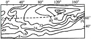 2、单选题 读亚欧大陆气温年较差分布示意图(单位℃),关于图示地区气温年较差变化规律及原因的叙述,不正确的是
