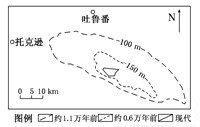 1、单选题 艾丁湖的存在对吐鲁番盆地绿洲的维持具有重要作用。下图是1万多年来艾丁湖变迁示意图。读图,回答1—2题。