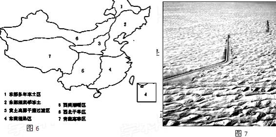 (2)甲、乙区域农业有共同的经济作物,结合材料二和所学知识说明与乙区域相比甲区域发展该经济作物的优势自然条件和限制性自然条件分别是什么?(6分)