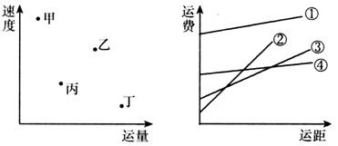 4、单选题 下图是四种运输方式(铁路、公路、水运、航空)特征比较示意图。据此回答1~2题。