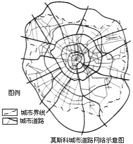 5、单选题 据下图判断,莫斯科城市道路网络布局形式的主要形成因素是