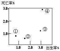 5、单选题 下图表示四个国家人口出生率和死亡率,其中人口自然增长率最高的国家是