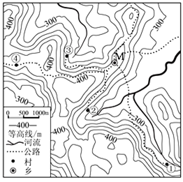 (2)左图中河流M的______(东、西、南、北)岸冲刷较严重。(2分)