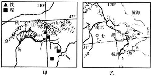 (1)甲中①农业区是河套平原,影响其发展的限制性因素是_______________。