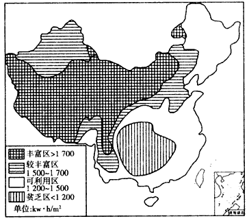 3、综合题 读“我国年太阳辐射总量的分布图”,回答下列问题。