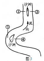 本题解析:小题1:根据地转偏向力和惯性,②③侵蚀严重,水较深,利于航行。