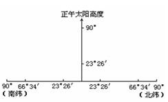 (5)请在下图中画出该日各纬度正午太阳高度的分布折线,并简述其规律(2分)