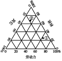 2、单选题 下图为“影响工业区位的劳动力因素、科技因素和其它因素的三角坐标图”。回答1—2题。