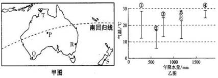 小题3:在乙图所示的几种气温年内变化和年降水量情况中,与P地相符的是