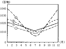 3、单选题  下图是伦敦、莫斯科、华盛顿、乌兰巴托四个城市气压变化曲线图,判断哪条曲线是乌兰巴托气温年变化曲线