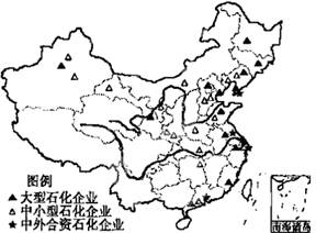 5、单选题  近年来,我国石化工业园区发展迅速,涌现出像上海石化工业园区、南京石化工业园区、青岛石化工业园区等60余家省级以上石化工业园区,成为带动中国石化工业发展的主导力量。读我国主要石化企业分布示意图,完成下列问题。