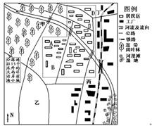 3、综合题 读某中等城市布局示意图,分析回答下列问题(5分)