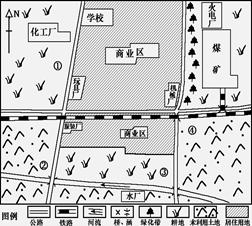1.该城镇欲依托矿产资源,调整工业结构,发展循环经济,你认为最适宜在该城镇布局的工厂是2.随着经济发展和人口的增长,若该城镇规划—处住宅区,你认为较合理的地点是