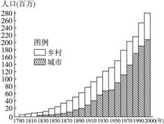 2、单选题 读“1790~2000年某国乡村和城市人口数量变化图”,完成下题。