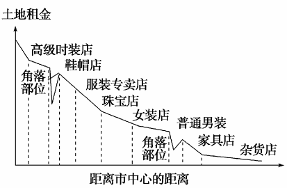 ④中心商务区有明显的水平分区2.图中“角落部位”租金较低,原因可能是