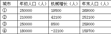 5、单选题  读下面某年四城市人口变化资料,回答下列各题。