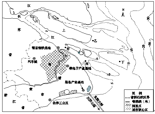 (3)本题考查考生对图像信息的提取能力,从图中不难读出精品钢铁、化学和船舶业工业基地的布局;影响微电子产业的主要区位因素是技术。