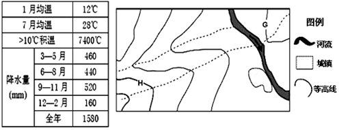 2、单选题 读“我国东部某地的等高线示意图”和“该地区的气候资料表”,图中等高线所示高度分别为100m、200m、300m、400m。综合分析后,回答问题。