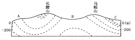 【小题2】图中长腰山为向斜构造,受外力侵蚀作用,形成向斜山。D正确。
