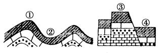 【小题2】在图中①~④四种地质构造中,最可能找到石油和天然气资源的是 ( )
