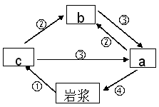 4、单选题 广西来宾县著名的奇石---国画石,又称花草石。其画面的形成是原岩在高温高压条件下,各种矿物质沿石内裂隙渗透、染色的结果。下图表示的是岩浆与三大类岩石相互转化示意图。