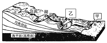 1.下列与甲处三角洲地貌的形成无关的是2.图中乙处瀑布最终可能会消失的原因是