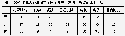 乙地区是属于市场主导型工业;从表格数据可以看出,乙地区普通机械、电机、运输机械等产业在全国所占的比重较大,市场广阔。(2分)