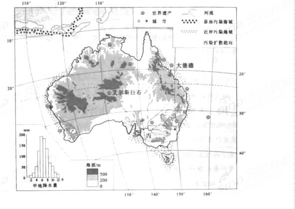 (5)说出澳大利亚东岸污染扩散的特点,并分析其主要原因。(7分)