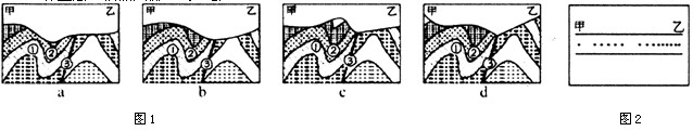 3、单选题  某同学骑自行车自甲地向乙地持续行进,进行野外地理考察。该同学利用手持GPS接收机每隔60秒自动记录一次位置。图1是考察路线地质剖面图,图2是GPS所记录的位置分布图。据此回答1~2题。