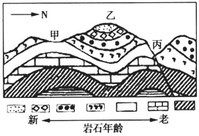 (1)地形:甲是__________,乙是_________。地质构造:甲是___________,丙是___________。