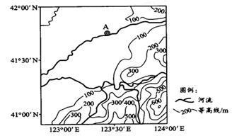 图中A地年平均降水量734.5毫米,其中夏季降水量占全年的61.4%;1月平均气温-12.O℃,7月平均气温24.5℃。