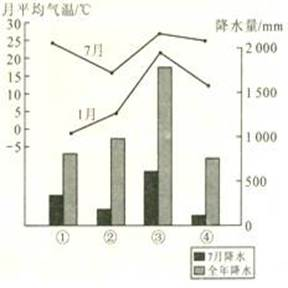 点评:本题难度一般,能抓住图示的气温、降水量分布基本信息判断气候类型是解题的关键,并能结合各个气候类型的气候特征,进而分析对自然灾害和农业生产的影响。