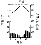 2、单选题 读图,罗马气温曲线降水柱状图,该气候的特点为