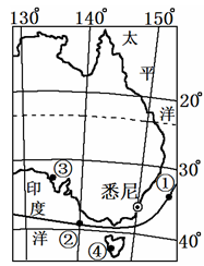 小题3:轮船驶往印度洋就是从由①驶向②,经过①时为西澳大利亚暖流,顺水,A对;太阳直射南半球为南半球夏季,②处风浪比冬季小,B错;③地为地中海气候,夏季炎热干燥,河流正值枯水期,C错;④地为印度洋板块内部,D错。