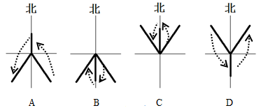 小题2:从题目中可知此时太阳直射南半球,太阳东南升西南落,②位于南半球,太阳视运动为东南→正北→西南,影子西北→正南→东北,D对。