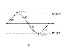 4、单选题 图甲是我国三个南极考察站分布示意图,其中昆仑站于2009年1月27日建成,这是我国在南极内陆建立的第一个科学考察站。图乙所示为太阳直射点回归运动示意图。读图回答题。