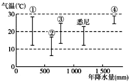 【小题3】P地位于澳大利亚大陆内部,为热带沙漠气候,地表沙质物质覆盖,全年高温、气温年较差大,符合①图的特征。